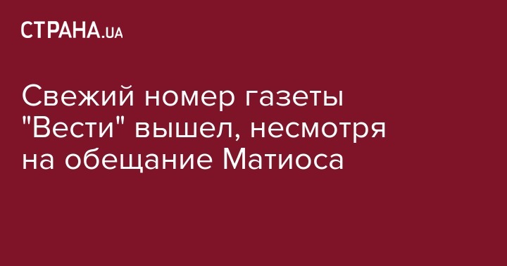 Свежий номер газеты "Вести" вышел, несмотря на обещание Матиоса