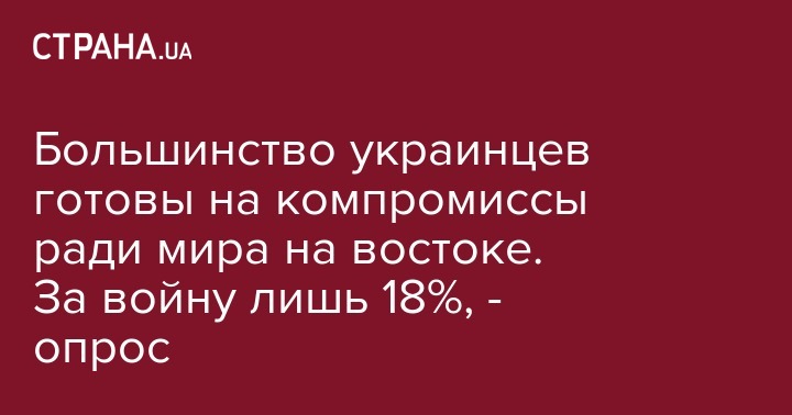 По ее словам, исследование показало, что абсолютное большинство населения Украины (70%), как и год назад, считает, что для достижения мира на Донбассе можно идти на компромиссы. 18% согласны идти на любые уступки для установления мира, а более половины опрошенных считают, что не всякие компромиссы приемлемы. Установление мира на Донбассе силовым путем видят лишь 18% опрошенных.