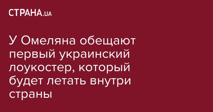 У Омеляна обещают первый украинский лоукостер, который будет летать внутри страны