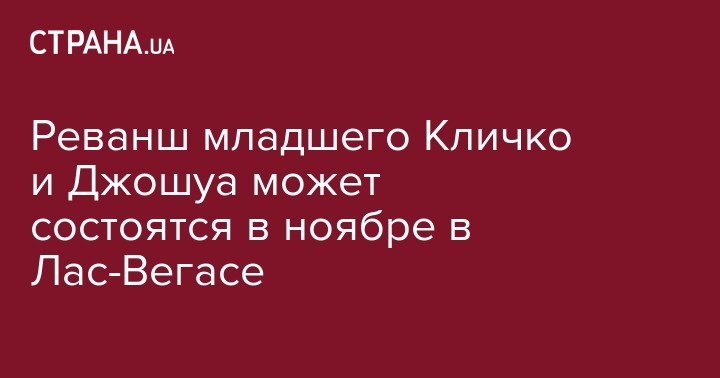 "Появилась первая информация, что Кличко и Джошуа договорились о реванше. Предварительно в ноябре в Лас-Вегасе", - написал в своем Twitter глава компании "Мир бокса" Андрей Рябинский.