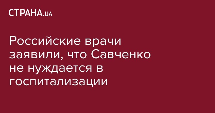 Российские врачи заявили, что Савченко не нуждается в госпитализации