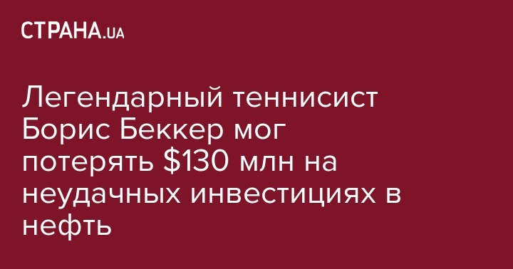 Знаменитый в прошлом немецкий теннисист Борис Беккер, который в прошлом месяце объявил себя банкротом, мог потерять свое состояние в районе 130 млн долл. из-за неудачных инвестиций в нефтяной сектор Нигерии. Об этом пишет The Telegraph.