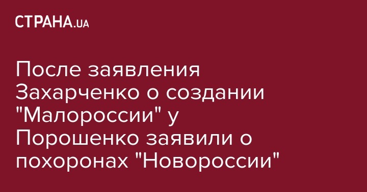 После заявления Захарченко о создании "Малороссии" у Порошенко заявили о похоронах "Новороссии"