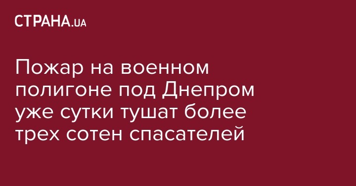 В Днепропетровской области вблизи пгт Гвардейское Новомосковского района на территории военного полигона Министерства обороны Украины продолжается пожар. Об этом сообщает пресс-служба ГосЧС Украины.