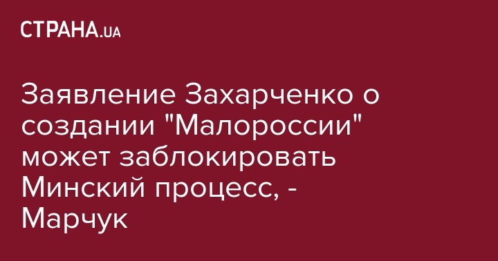 Заявление Захарченко о создании "Малороссии" может заблокировать Минский процесс, - Марчук