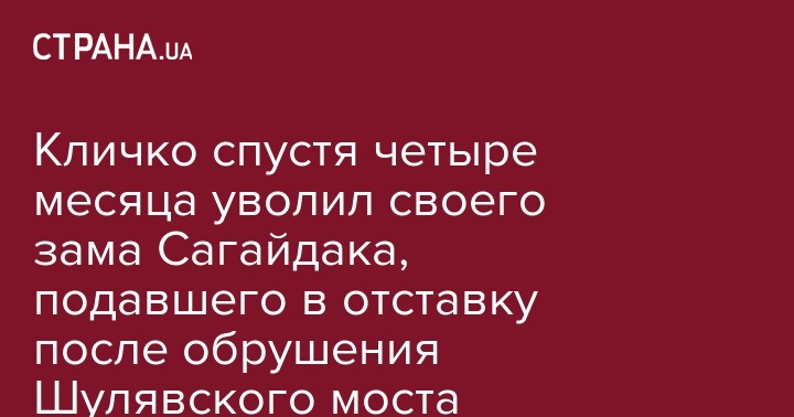 Кличко спустя четыре месяца уволил своего зама Сагайдака, подавшего в отставку после обрушения Шулявского моста