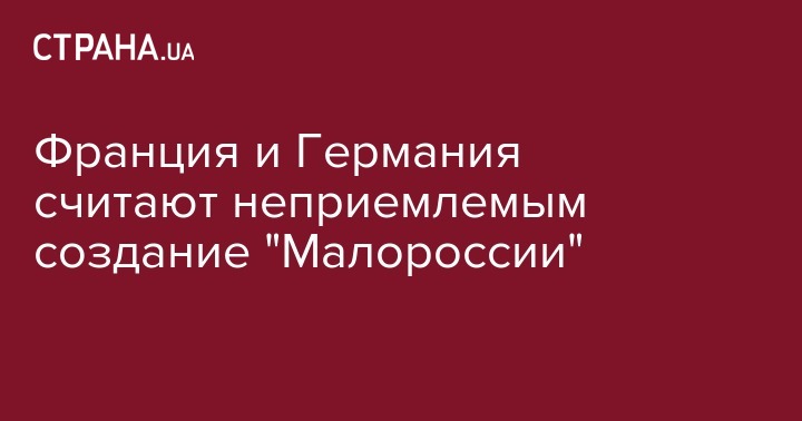 В Германии и Франции считают неприемлемым создание "Малороссии" и просят Россию заставить одуматься подконтрольные ей "ЛДНР", пишет "Интерфакс".
