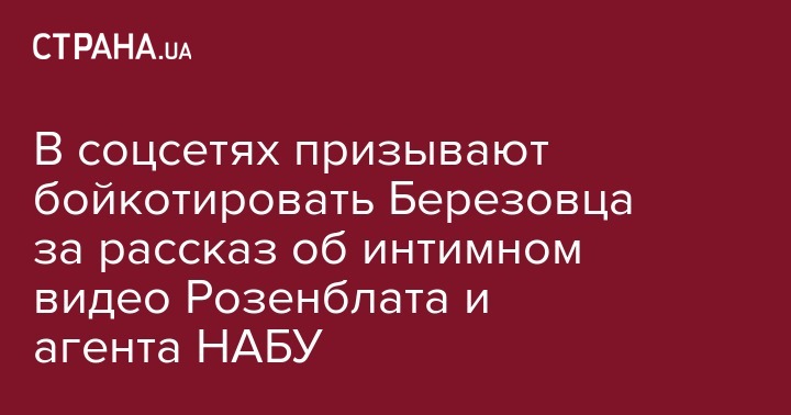 Близкий к Администрации президента политтехнолог, директор компании Berta Communications Тарас Березовец заявил, что НАБУ имеет интимные видео Розенблата и агента "Екатерины", которая предлагала нардепу деньги за выдачу лицензий на добычу янтаря. Березовец сегодня заявил об этом в эфире "5 канала".