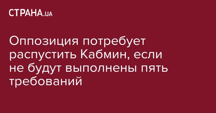 Оппозиция потребует распустить Кабмин, если не будут выполнены пять требований