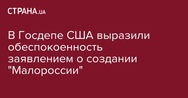 Официальный представитель Госдепа (аналога МИД) США Хезер Науэрт выразила обеспокоенность из-за заявлений Александра Захарченко о намерении создать "государство Малороссия".