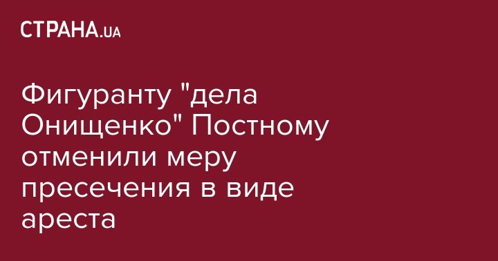 "19 июля Апелляционный суд Львовской области отменил меру пресечения в виде содержания под стражей, примененную к подозреваемому Постному на основании решения Галицкого райсуда Львова от 3 июля по делу о хищении газового конденсата, которое расследуется Львовским территориальным управлением НАБУ", - сообщили в НАБУ.