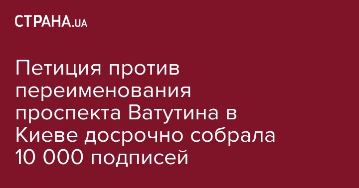 На официальном портале электронных петиций Киевского горсовета на 42 дня раньше отведенного срока завершился сбор подписей под петицией, которая требует оставить прежнее название проспекту Ватутина в Киеве.