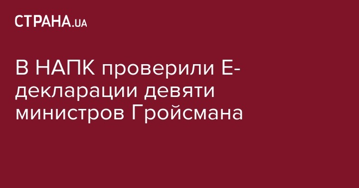 В НАПК проверяли данные вице-премьер-министра Павла Розенко и восьми министров - обороны Степана Полторака, соцполитики Андрея Ревы, экологии и природных ресурсов Остапа Семерака, экс-министра информационной политики Юрия Стеця, энергетики и угольной промышленности Игоря Насалика, культуры Евгения Нищука, министра по вопросам временно оккупированных территорий и внутренне перемещенных лиц Вадима Черныша и главы Мининфраструктуры Владимира Омеляна.