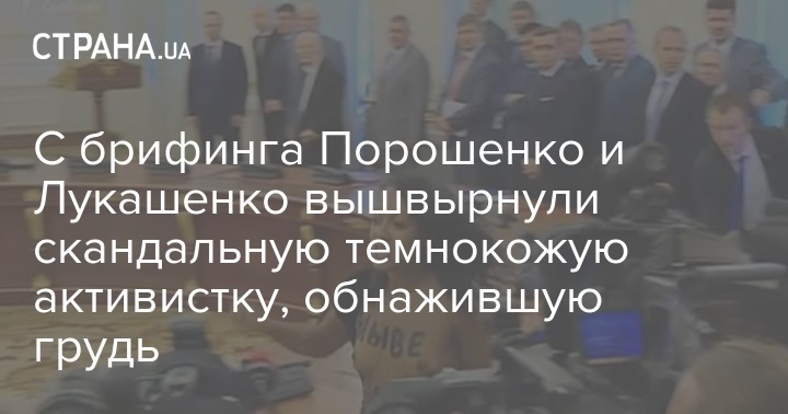 С брифинга Порошенко и Лукашенко вышвырнули скандальную темнокожую активистку, обнажившую грудь