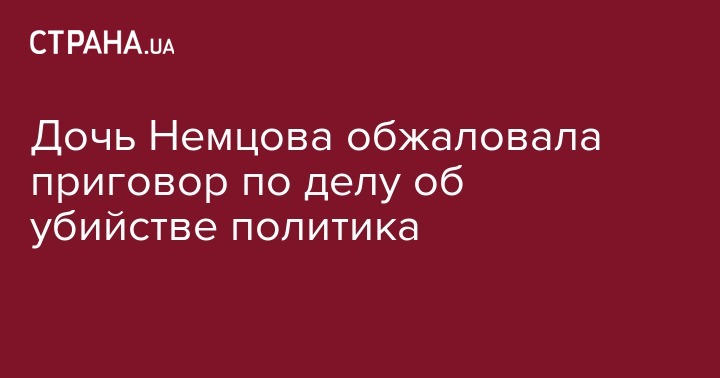 Дочь убитого российского оппозиционера Бориса Немцова Жанна обжаловала приговор по делу об убийстве ее отца. Об этом сообщила адвокат Ольга Михайлова, передает "Новая газета".