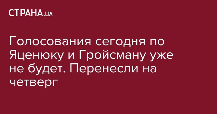 Депутат от БПП Алексей Гончаренко сообщил "Стране", что вопрос по отставке Арсения Яценюка с поста премьера и назначению на эту должность Владимира Гройсмана парламент сегодня рассматривать уже не будет. Так как в среду тоже рассматриваются процедурно другие вопросы, вероятнее всего, голосование состоится в четверг.