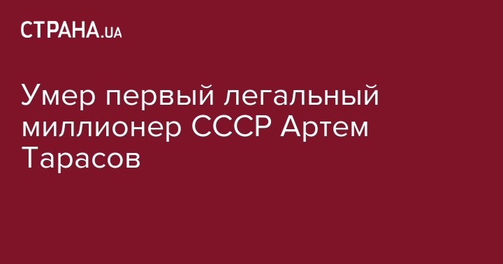 В возрасте 67 лет умер первый легальный миллионер СССР Артем Тарасов. Об этом в воскресенье, 23 июля 2017 сообщает РИА Новости с ссылкой на пресс-службу партии "Яблоко".