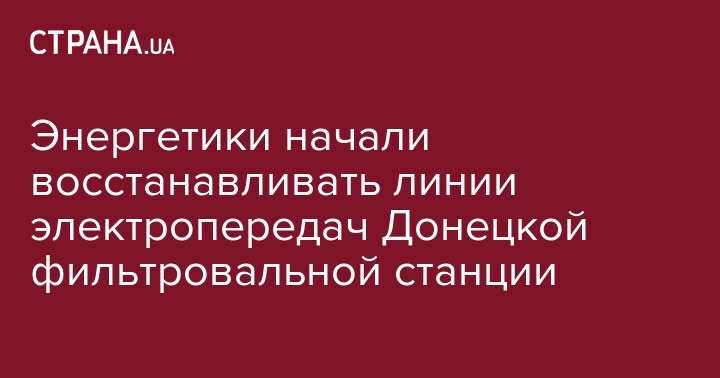 "Сегодня в 09:00 бригады энергетиков начали ремонт поврежденных участков линии электропередач Донецкой фильтровальной станции", - говорится в сообщении.