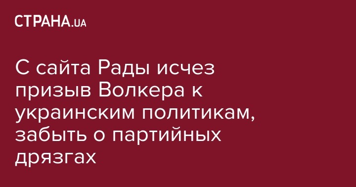 С сайта Рады исчез призыв Волкера к украинским политикам, забыть о партийных дрязгах