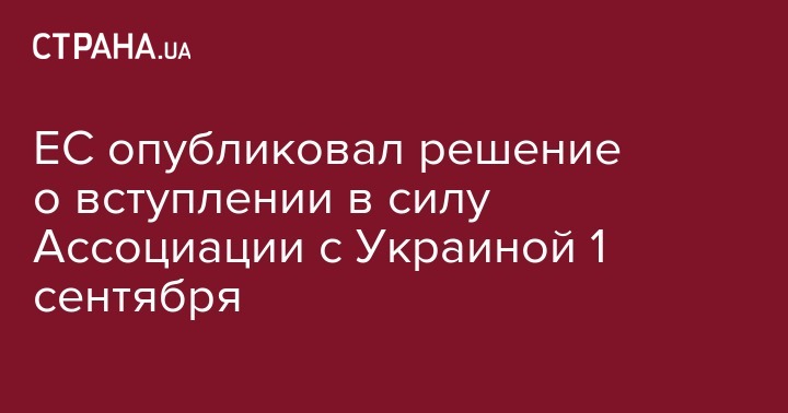 Как сообщала "Страна", 12 июля Евросоюз обнародовал решение об окончательной ратификации Соглашения об ассоциации Украина-ЕС в своем Официальном журнале.