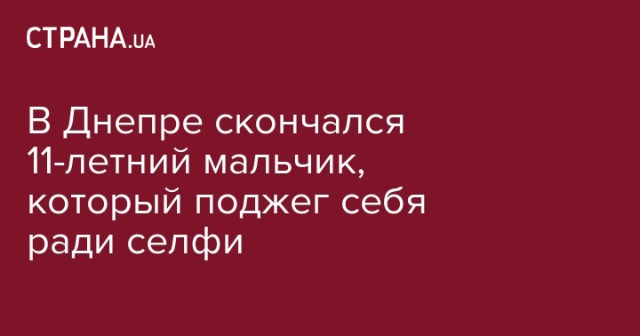 В Днепропетровской областной детской больнице умер 11-летний мальчик, который сжег себя ради селфи. Об этом пишет "Радио Свобода".