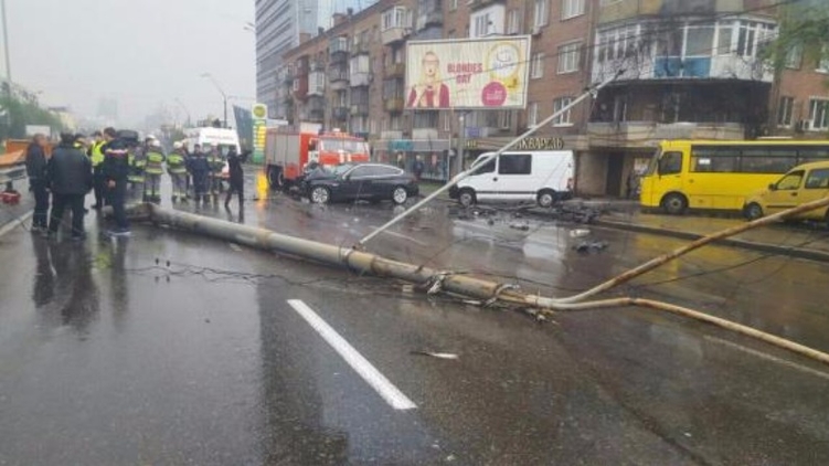 Сегодня утром 13 апреля, в Киеве, на проспекте Победы разыгралась нешуточная драма. Автомобиль марки BMW, двигаясь в направлении центра, на полном ходу влетел в троллейбусную опору. Об этом сообщает "Еспрессо ТВ". Удар был такой силы, что бетонный столб рухнул на мостовую.
