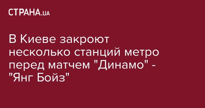 В Киеве закроют несколько станций метро перед матчем "Динамо" - "Янг Бойз"
