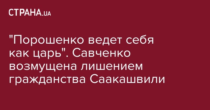 Народный депутат Надежда Савченко раскритиковала решение Петра Порошенко лишить Михаила Саакашвили гражданства Украины. В Facebook она написала, что президент действует как царь, а его решение является незаконным.