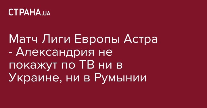 Стартовый матч Александрии в Лиге Европы против румынской Астры не будет показан ни в Украине, ни в Румынии, об этом передает Sport Arena.