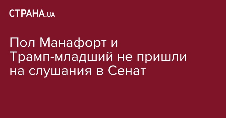 Сын президента США - Дональд Трамп-младший и экс-руководитель его предвыборного штаба Пол Манафорт в среду, 27 июля не пришли  на слушания судебного комитета Сената о расследовании предполагаемого влияния России на президентские выборы 2016 года, передает УНН со ссылкой на CTPost.