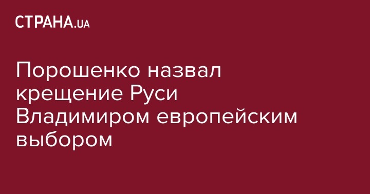 Президент Петр Порошенко назвал крещение Киевской Руси в 988 году князем Владимиром Великим "европейским выбором".  Об этом он написал в Facebook.
