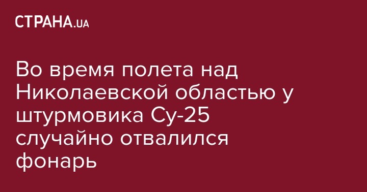 Во время учебно-тренировочного полета у штурмовика Су-25 случайно отстрелил фонарь кабины пилота (элемента крыши кабины). Внештатный инцидент произошел в Николаевской области. Об этом сообщает "Укринформ" со ссылкой на пресс-секретаря 299-й бригады тактической авиации Алексея Гаркушу.