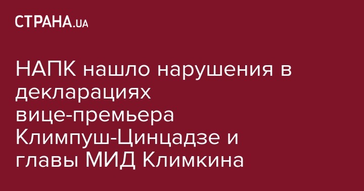 Сегодня НПК утвердило результаты проверок деклараций премьер-министра Владимира Гройсмана, ряда членов Кабинета министров, народных депутатов и судей. Нарушения зафиксированы у вице-премьера по вопросам европейской и евроатлантической интеграции Иванны Климпуш-Цинцадзе и министра иностранных дел Павла Климкина.