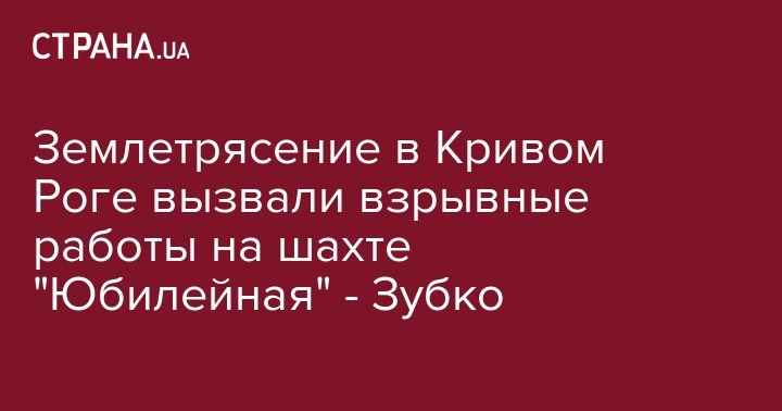 Землетрясение в Кривом Роге вызвали взрывные работы на шахте "Юбилейная" - Зубко