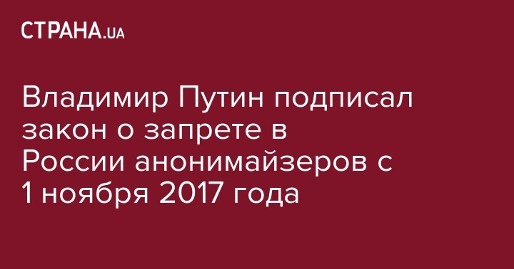 Владимир Путин подписал закон о запрете в России анонимайзеров с 1 ноября 2017 года