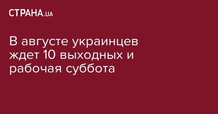В августе украинцам предоставится 10 дней отдыха, а рабочими будут 21 день. Об этом сообщают "Украинские Новости".