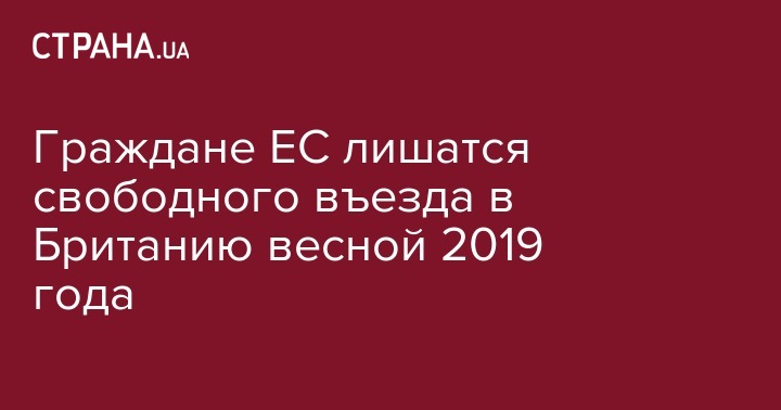 Свободное передвижение между странами британских подданных и граждан Европейского союза будет прекращено весной 2019 года, сообщили в понедельник The Gardian со ссылкой на заявление представителя премьер-министра Великобритании Терезы Мэй.