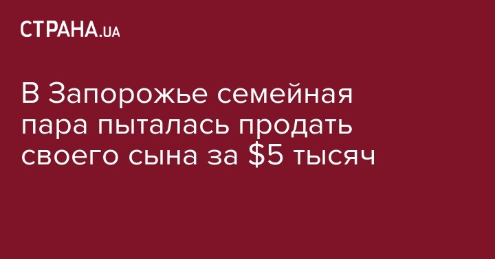 В Запорожье в понедельник полиция задержала семейную пару по подозрению в попытке продажи своего 2-летнего сына за $5 тыс. Об этом на своей странице в социальной сети Facebook сообщил начальник Главного управления Нацполиции в области Олег Золотоноша.