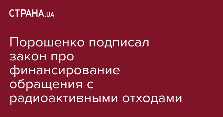 Порошенко подписал закон про финансирование обращения с радиоактивными отходами