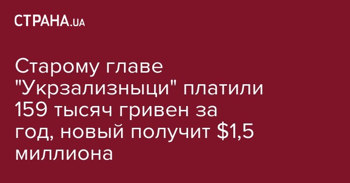 Старому главе "Укрзализныци" платили 159 тысяч гривен за год, новый получит $1,5 миллиона