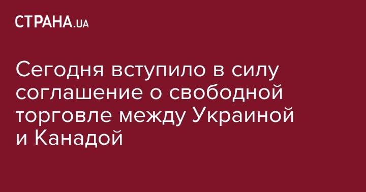 Сегодня вступило в силу соглашение о свободной торговле между Украиной и Канадой