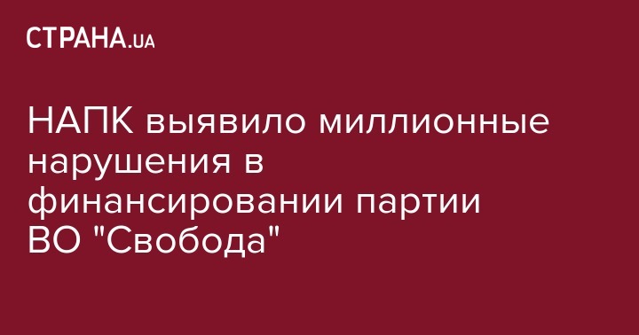 Национальное агентство по предупреждению коррупции (НАПК) инициировало начало административного производства о нарушениях финансирования партии ВО "Свобода" в Дарницком суде, говорится в сообщении на сайте ведомства.