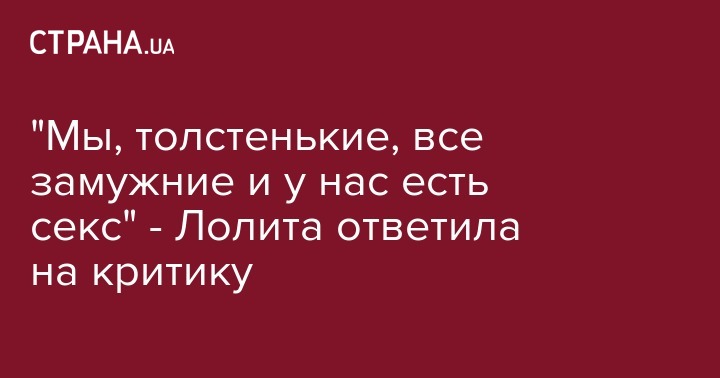 "Мы, толстенькие, все замужние и у нас есть секс" - Лолита ответила на критику