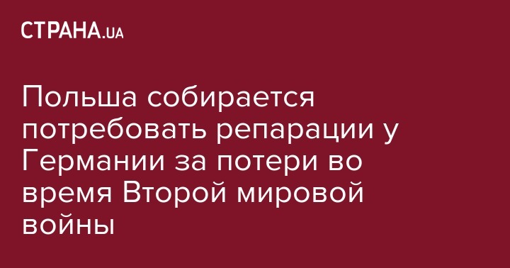 Польские власти могут потребовать выплаты репараций у Германии в связи с потерями во время Второй мировой войны. Такую возможность изучает комиссия польского парламента. Об этом сообщает "Европейская правда".