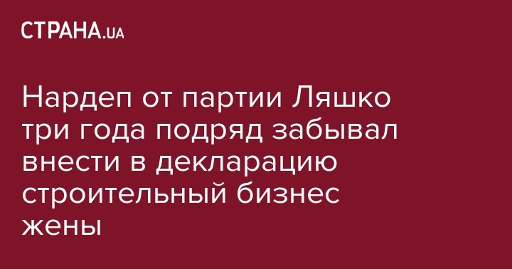 Нардеп от партии Ляшко три года подряд забывал внести в декларацию строительный бизнес жены