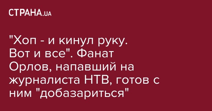 "Слушайте, я готов принести свои извинения и денежную компенсацию. Давай добазаримся, сколько там надо. Я не хотел. Просто иду, а он мне какую-то гадость говорит. Хоп — и кинул руку. Вот и все", — сказал Орлов в эфире телеканала НТВ.