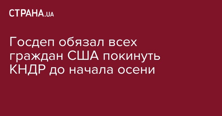 Государственный департамент США обязал всех граждан страны, находящихся на территории Северной Кореи, покинуть азиатское государство до 1 сентября 2017 года. Об этом говорится в сообщении ведомства.