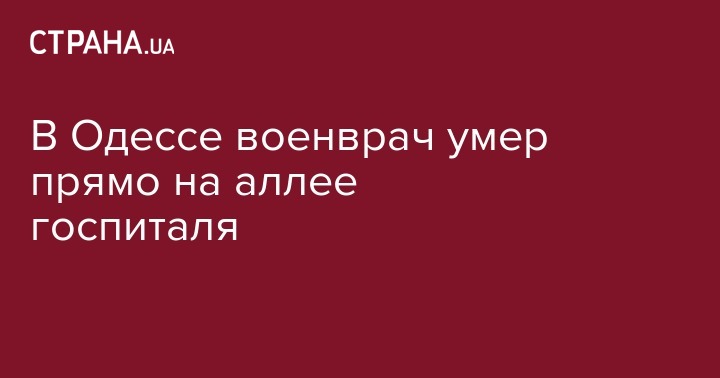 В Одессе на территории Военно-медицинского клинического центра Южного региона (ранее - 411-й военный госпиталь) умер 55-летний начальник одной из клиник учреждения, находившийся при исполнении служебных обязанностей.