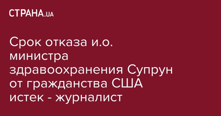 По данным журналиста Наталии Влащенко, предельный срок для отказа и.о. министра здравоохранения Украины Ульяны Супрун от гражданства США уже истек. При этом, со ссылкой на свои источники, Влащенко говорит, что этого не произошло.