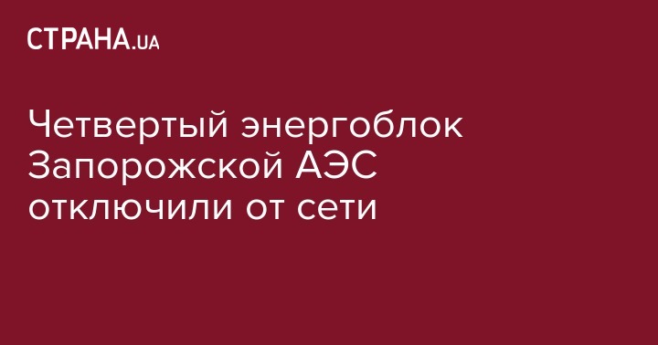 Сегодня, 5 августа, энергоблок №4 Запорожской атомной электростанции отключен от энергосети. Об этом сообщает пресс-служба "Энергоатома".